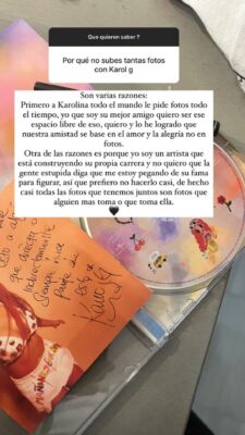 Además, Daiky Gamboa, aprovechó la situación para lanzar una puya a quienes lo relacionan de manera negativa con Karol G: “Otra de las razones es porque yo soy un artista que está construyendo su propia carrera y no quiero que la gente estupida diga que me estoy pegando de su fama para figurar”, dijo. Aclarando que no le interesa que la relacionen con ella si se trata de ganar fama a su costilla pues él tiene sus propias capacidades.
