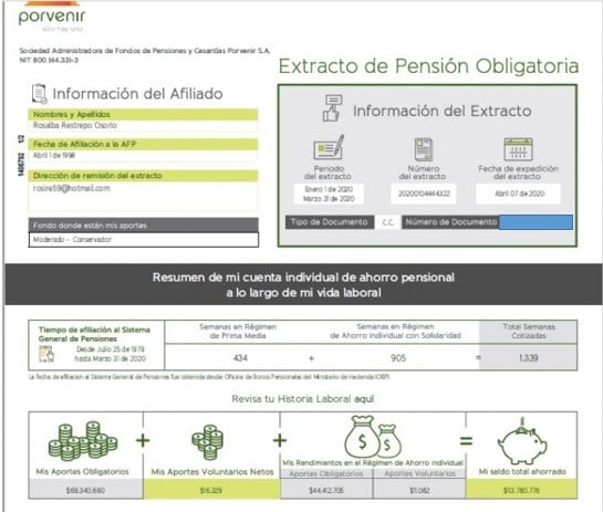 Es totalmente indignante que después de cotizar 26 años en el sistema de pensión, me estén negando el derecho que tengo a disfrutar de lo que adquirí durante tantos años de trabajo, por esta razón quiero dar a conocer mi situación ya que Porvenir ya tiene mi bono pensional hace un año. Además, me llega un extracto donde se refleja que perdí SEIS MILLONES DE PESOS en el primer semestre del año, me pregunto: ¿por qué? Si hace cuatro años yo debería estar recibiendo mi pensión o deberían haberme devuelto MI dinero. A continuación, adjunto las pruebas que dan fe de la veracidad de mi historia: respuesta de Porvenir, constancia de semanas cotizadas y último extracto enviado por Porvenir donde se refleja la pérdida mencionada.