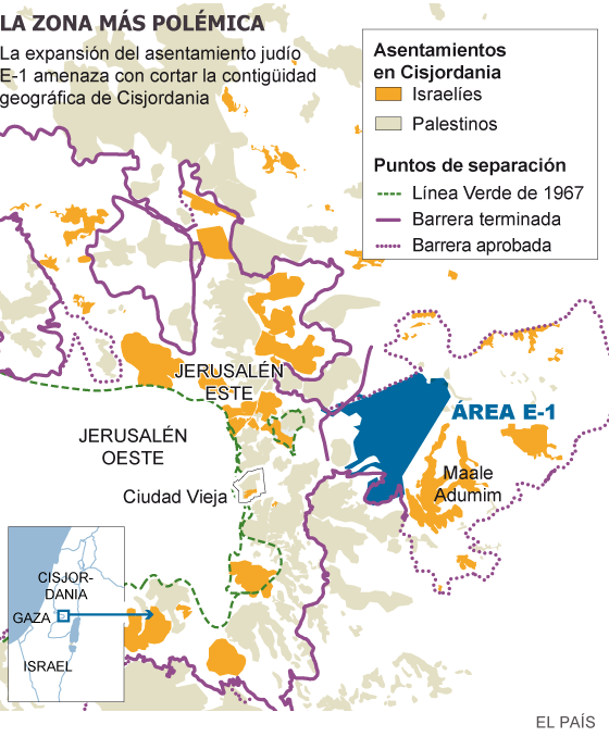 El proyecto nombrado E1 ha sido postergado en varias ocasiones y tendrá graves sanciones internacionales. Fue incluso rechazado en años anteriores por el gobierno de George Bush, que a pesar de ser uno de los gobiernos más pro israelíes que ha tenido Estados Unidos, se opuso a que el E1 fuera puesto en marcha. A pesar de que sigue habiendo un gran apoyo por parte de Estados Unidos a Israel tanto económica como militarmente, las relaciones entre Obama y Netanyahu nunca han estado en los mejores términos, e incluso el presidente norteamericano ha reiterado en diferentes oportunidades su apoyo a la solución de dos estados.