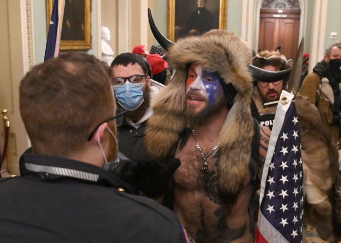 Dentro de las imágenes dramáticas que ofrecía el asalto al capitolio, una, surrealista, desentonaba particularmente, la de un joven con la cara pintada con los colores de la bandera estadounidense, una cornamenta de búfalo y ataviado con un abrigo de piel que dejaba entrever sus tatuajes.