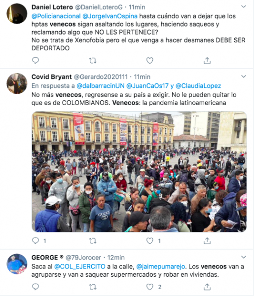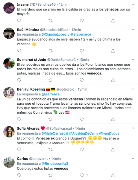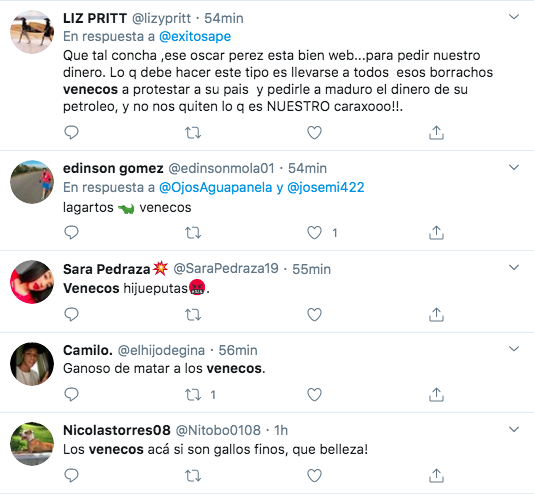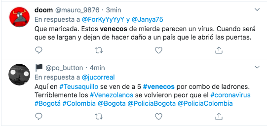 Una lluvia de trinos xenófobos han despertado las protestas de los venezolanos en todo el país. La intolerancia en estos tiempos de Coronavirus se ha desatado hasta el punto que las amenazas de muerte y planes de limpieza contra venezolanos son moneda corriente en twitter como se ven en estos trinos: