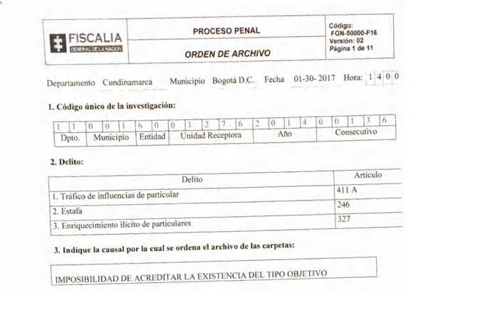 En declaraciones a SEMANA , el abogado insistió en que el estratega Rendón jamás se reunió con narcos. “Está probado que nunca recibió dinero o remuneración por su gestión, que estaba autorizada por el gobierno de Santos”, dijo. Respaldando sus declaraciones, el abogado mostró por primera vez el documento de once páginas codificado FGN-50000-F16, donde la Fiscalía ordena archivar el expediente por imposibilidad de probar las acusaciones penales que se intentaron para incriminar a su cliente.