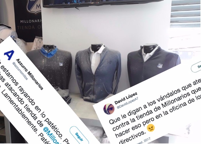 "Afuera esos putos directivos" entró coreando el hombre sin identificar, en donde puso varias bombas de gas. La tienda fue vandalizada horas antes del partido que Millonarios perdió en Medellín contra Nacional. Pero no todos salieron a condenar el hecho y respaldar el equipo, sino que intentaban justificar la violencia, justificar lo injustificable.