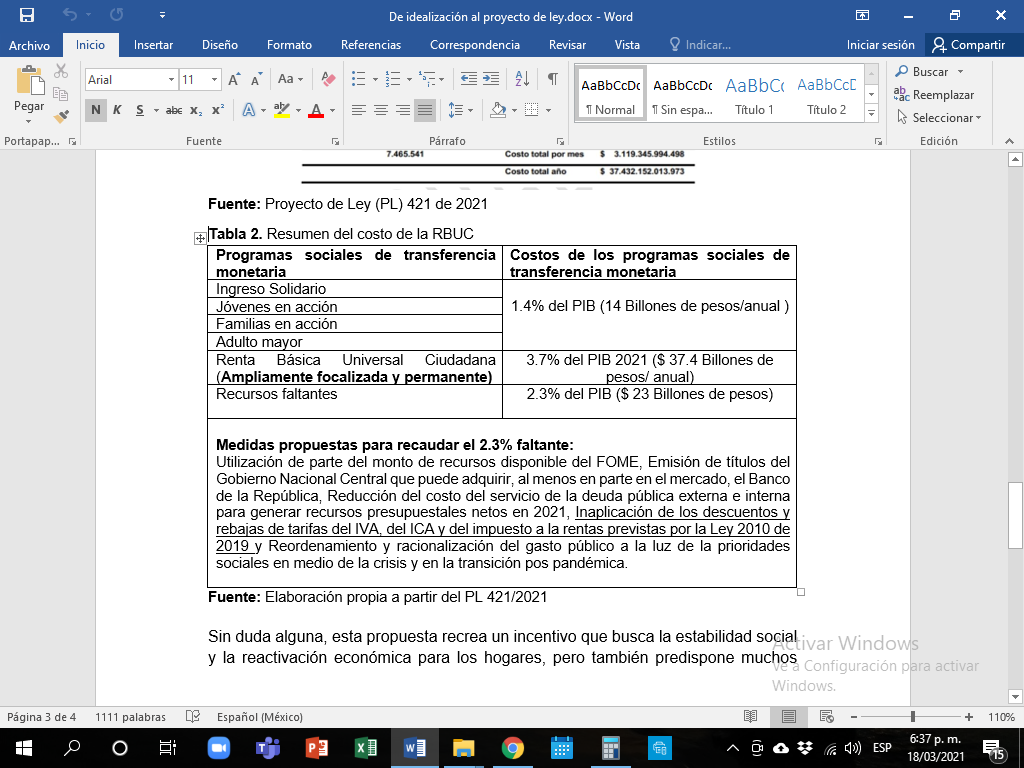 Esta nueva propuesta (Proyecto de Ley 402-2021[2], “por medio del cual se crea el programa Renta Básica como Política Permanente de Estado en condición de derecho de ciudadanía y se dictan otras disposiciones”) es presentada por una bancada de más de 50 parlamentarios, quienes idealizan el sentir económico y social del pueblo a partir de sus necesidades como sociedad colombiana vilmente golpeada por la pandemia, pues la situación del país no es la mejor, dado que según cifras del Dane, el PIB se contrajo en el año 2020 -6.8%, a enero 2021 la tasa de desempleo está por el 17.3% y el índice de feminidad de la pobreza (nacional -2019) es del 116% (es decir, hay 116 mujeres en hogares pobres por cada 100 hombres en hogares pobres)[3].