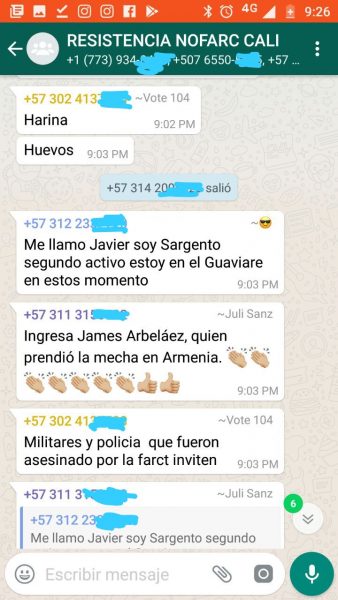 Todas los saboteos de la gira de Cali fueron organizadas por este grupo de chat.