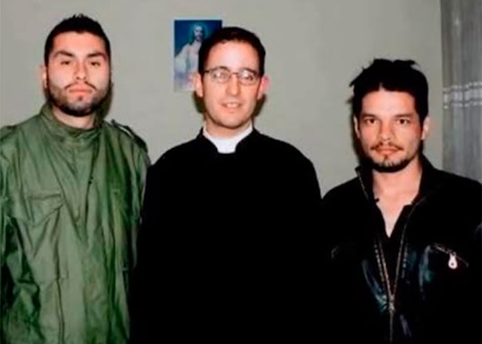 Eduardo Romano, El padre Fernando Altamira y Fernando Acosta, miebros de Restauración Nacional.