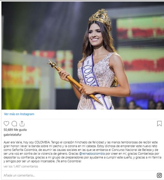 Gabriela Tafur no siempre soñó con ser reina. Su vocación era otra, lejos de los rigores de la estética, de los cosméticos, de la vanidad. Creó una banda en el 2014, a los 19 años, cuando ya estudiaba Derecho en La Universidad de Los Andes. Ya en esa época sabía hablar tres idiomas, inglés, francés y alemán y no porque quería ser Miss Universo sino porque ya tenía todo listo para trabajar como abogada en el área jurídica de Microsoft Colombia.