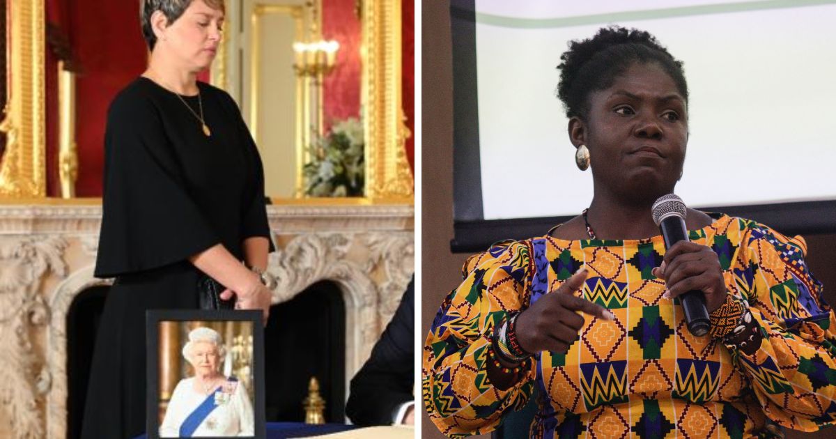 Cabe mencionar que la aludida también estuvo en la despedida de la reina de Inglaterra, donde se iba a reunir la élite del mundo, junto con el canciller Álvaro Leyva en representación de nuestro país; vuelvo y pregunto ¿qué hacía ella allá si no representa al Estado colombiano? Quien sí debería hacer presencia en tales actos era la señora vicepresidenta Francia Márquez, o ¿acaso fue que los ojos claros de la señora Alcocer le ganaron en belleza a la presencia de la vice?