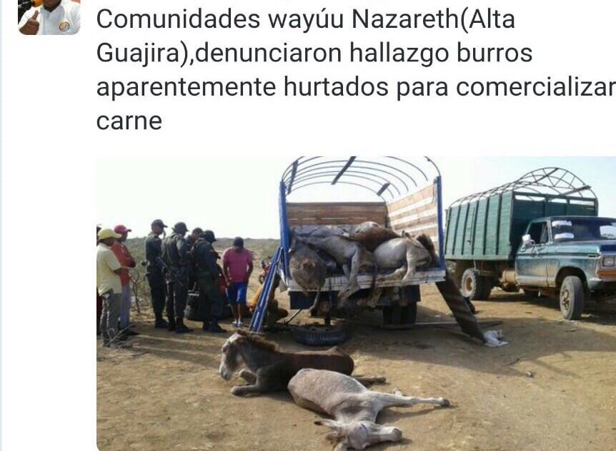 Los burros tienen un valor especial en La Alta Guajira, cuatro horas desierto adentro desde el municipio de Uirbia. Son el único medio de transporte que tienen las comunidades wayúu para llevar la poca agua de la que se dispone a sus hogares. Este fin de semana decenas de ellos fueron encontrados muertos mientras eran transportados hacia otras regiones de la costa con el fin de venderlos en el mercado negro como carne para consumo humano.