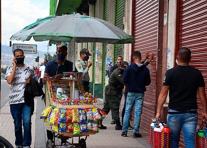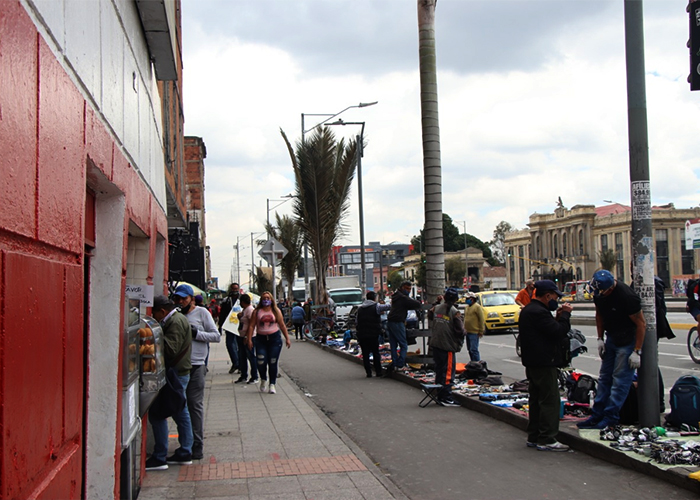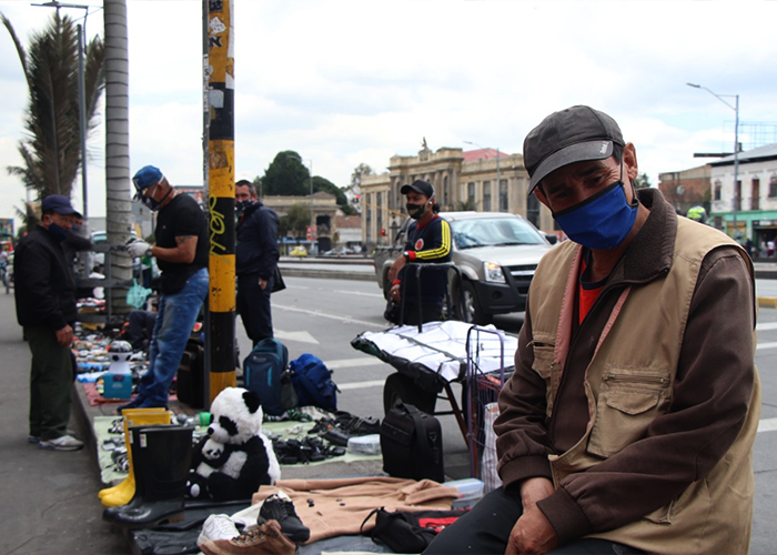 En la calle 13, frente a la estación de La Sabana, las tiendas de bicicletas y los vendedores ambulantes inundan las aceras. Allí la cuarentena parece solo una medida en el papel y aunque todos llevan tapabocas, dicen ellos, prefieren arriesgarse a contraer el virus antes de no llevar un plato de comida.