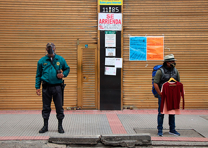 Decenas de letreros de arriendo y domicilios llenan las fachadas del comercio mientras los vendedores intentan mantener la distancia de un metro. Foto: María Fernanda Padilla Quevedo