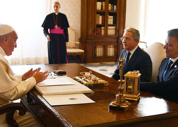 Ingenuos los que propiciaron el encuentro de Álvaro Uribe y Juan Manuel Santos con el Papa Francisco, creyendo que se iba a lograr algún acuerdo o al menos limar "las asperezas"; como si éstas últimas fueran simplemente eso, asperezas, y no serias contradicciones, no precisamente entre los otrora coequiperos del gobierno de la seguridad democrática, sino del ahora senador con los contenidos que demanda una propuesta de paz frente a los que ni antes ni ahora, ni nunca estará dispuesto a ceder.