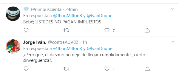 El senador de Colombia Justa y Libre John Milton Rodríguez le exigió en este hilo de twitter al presidente Iván Duque que salve las iglesias cristianas: