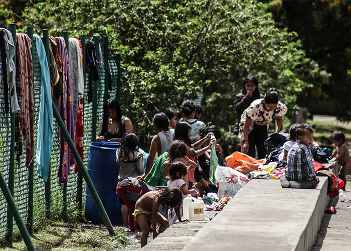 Los indígenas dicen que están solos. Denuncian solo Lo único que una entidad de Gobierno les ha entregado para que su estadía fuese menos difícil fueron unos plásticos negros para levantar sus cambuches; lo hizo hace varios meses la Alta Consejería para las Víctimas. Dicen que no tienen brigadas de salud. Dicen que ni un grano de arroz les ha llegado por parte de la alcaldía ni del gobierno de Duque. La comida y la escasa comodidad que han logrado en esta ciudad se la han dado los bogotanos de a pie que llegan hasta las barreras de lata que rodea el parque.