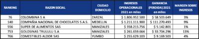 Colombia es un gran productor de golosinas precisamente y no es accidental que la mayoría de éstas estén localizadas en la región donde crece el cultivo de azúcar, el suroccidente colombiano. Las ventas fueron significativas, colocándose estas cinco empresas entre las 1.000 empresas más grandes del país y Colombina entre las cien, con un agresivo y exitoso crecimiento en la última década.