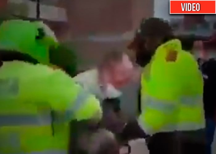 Ocurrió en Bogota, el señor solo intervino para que los agentes no golpearan a un señor lesionado. Hay indignación