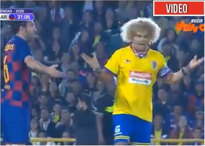 En un partido amistoso en el Campin de Bogotá, el ídolo del fútbol colombiano, Carlos Valderrama, le pegó tremendo patadón al mediocampista Roberto Trashorras