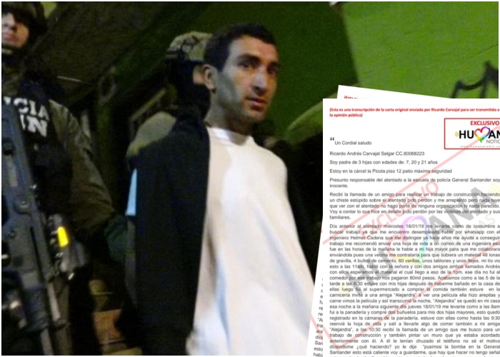 Carvajal, el supuesto cómplice del carro bomba, se defiende con esta carta