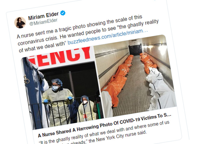 Las bolsas en una camión guardan los cuerpos de personas que han muerto por el coronavirus. Una enfermera la compartió para BuzzFeed
