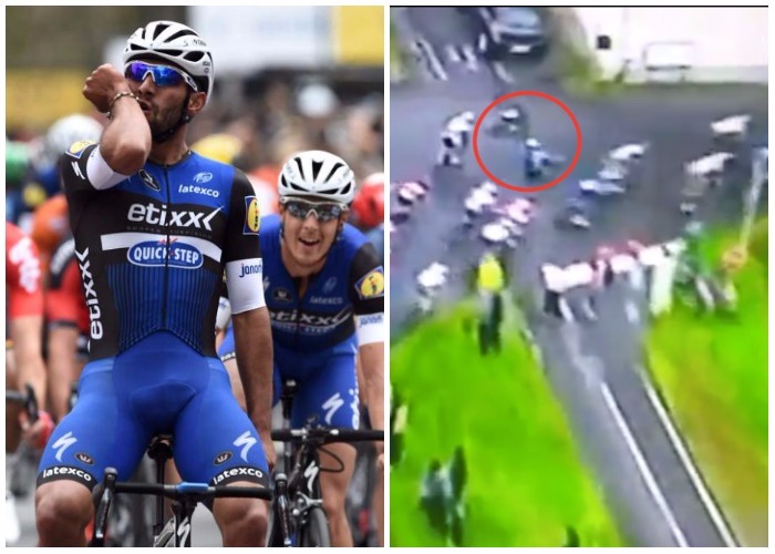 El colombiano, favorito para ganar la Paris Tours, última carrera del año, se cayó faltando 15 kilómetros