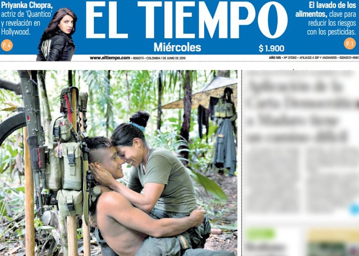 Dos guerrilleros de las FARC abrazados, es la foto más destacada del diario más leído en Colombia. Las cosas están cambiando