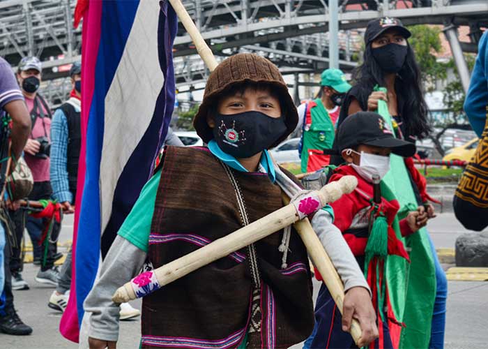Desde el Cauca llegaron indígenas de todas las edades acompañar la Minga, se ocupan de cuidar a los niños y jóvenes que están en Bogotá a la espera de que el Presidente los atienda