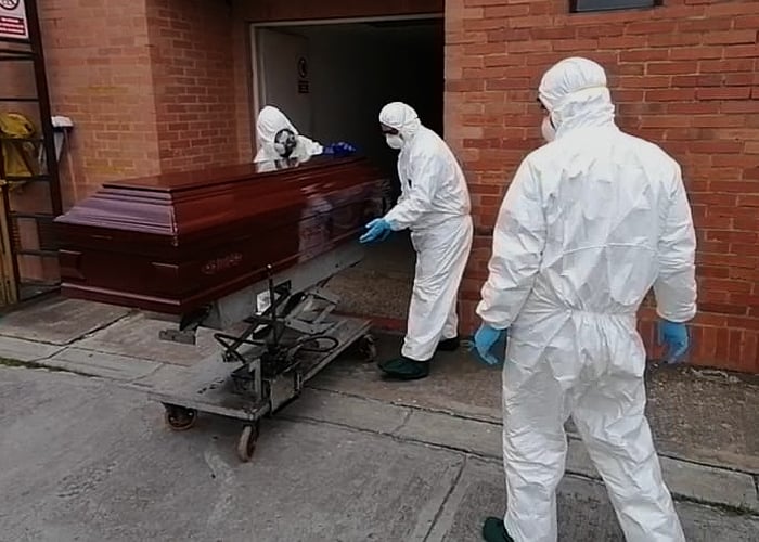 Sin la compañía de sus familiares los difuntos tienen que ser cremados. En Bogotá los cadáveres llegan al Cementerio Serafín, donde son puestos uno a uno en las puertas del horno