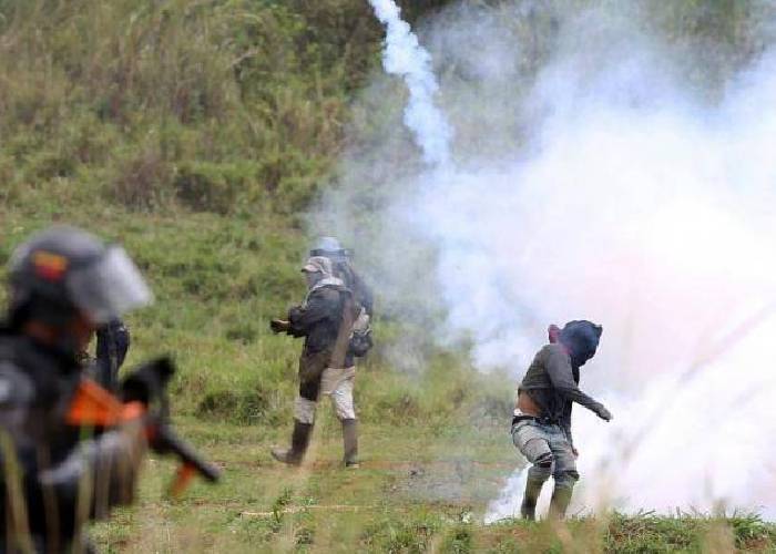 Quiso la mala fortuna que a metros de su casa se desatara una batalla campal entre el Esmad y un grupo de personas que pretendía invadir una propiedad privada