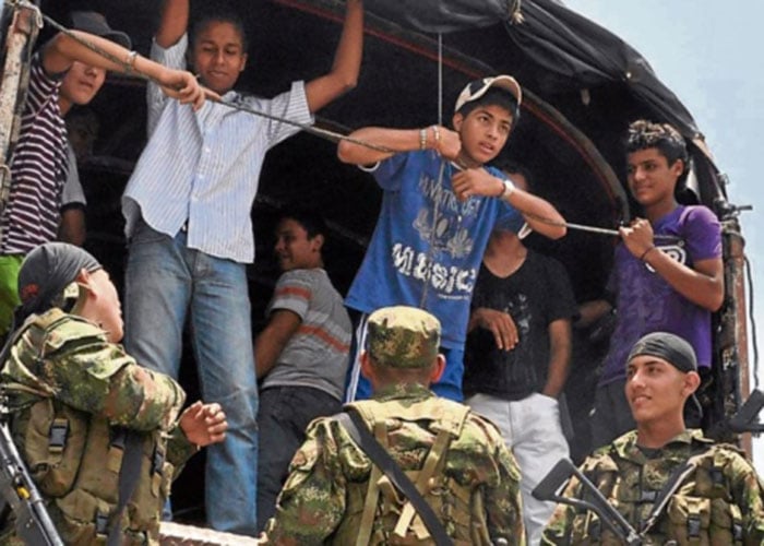 El servicio militar en Colombia es obligatorio solo para esos jóvenes que no pueden pagar la libreta militar. El 99 % de quienes lo prestan son de clases populares