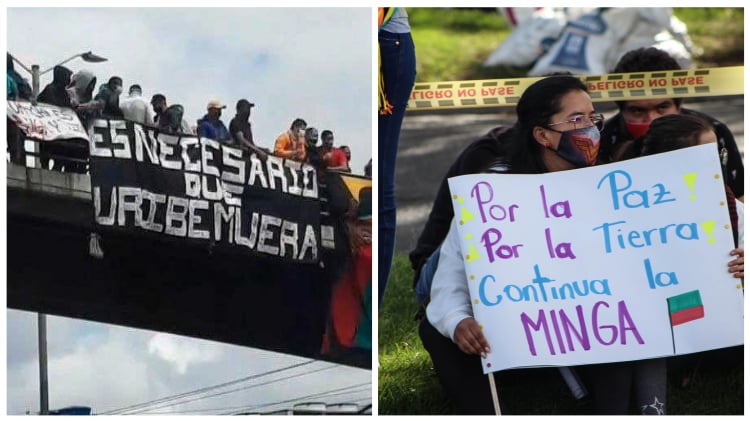 Una minga bien organizada, pero con mensajes contradictorios en carteles por donde pasaba: en un lado “La defensa de la vida”, en otro " Es necesario que Uribe muera”