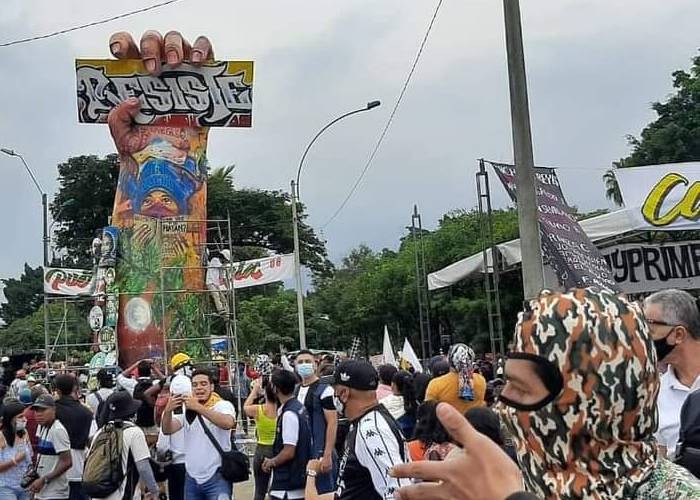 Uno de los símbolos de la Unión de Resistencias en el punto de Puerto Rellena, el más radical en Cali, se volvió sitio turístico hasta de los que lo querían tumbar