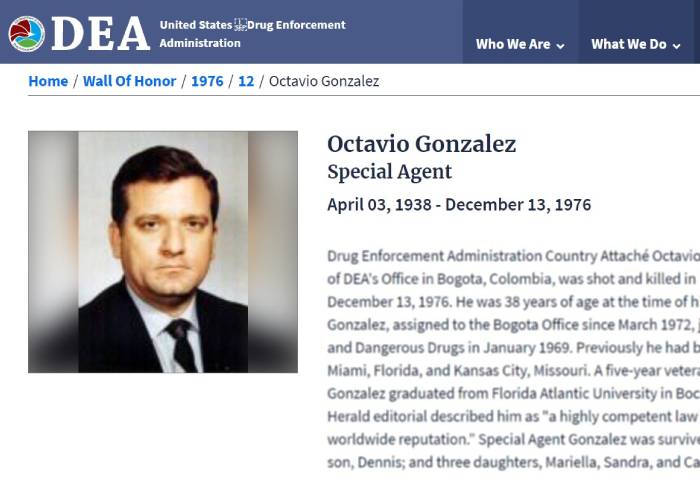 En 1976, Octavio González fue asesinado en la sede de la capital de Colombia de la Drug Enforcement Administration. Los hechos son confusos