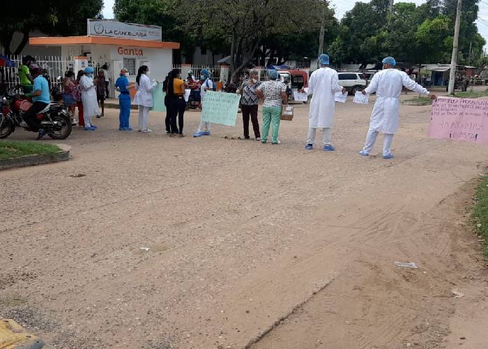 Trabajadores deL hospital La Candelaria de El Banco, al sur del Magdalena, piden soluciones al gobierno de turno ante el atraso en el pago de los salarios