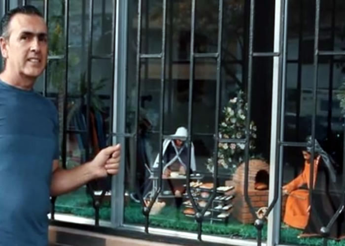 Jorge Jaramillo transforma cada día el pesebre que exhibe desde de su casa, rompiendo la rutina de quienes descienden del Metroplús en el Parque de Belén
