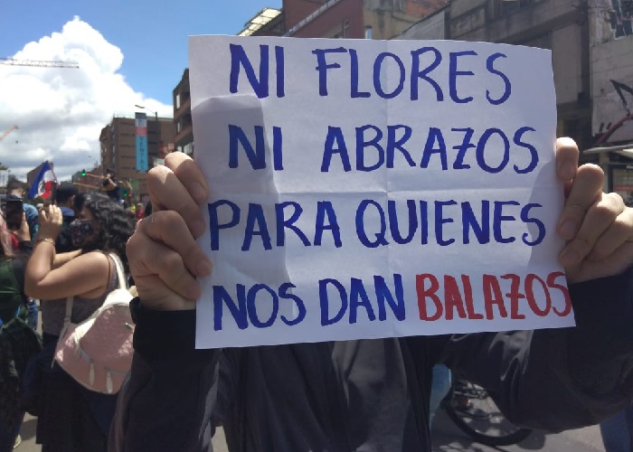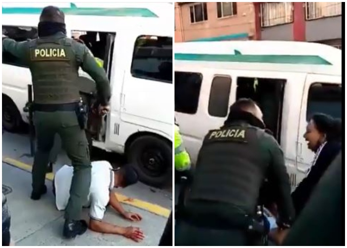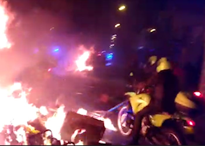 Mientras la gente sale con cacerolas, los policías intentan amedrentar con sus motos y pistolas, según denuncias ciudadanas. Ocurrió en el Parkway de Bogotá