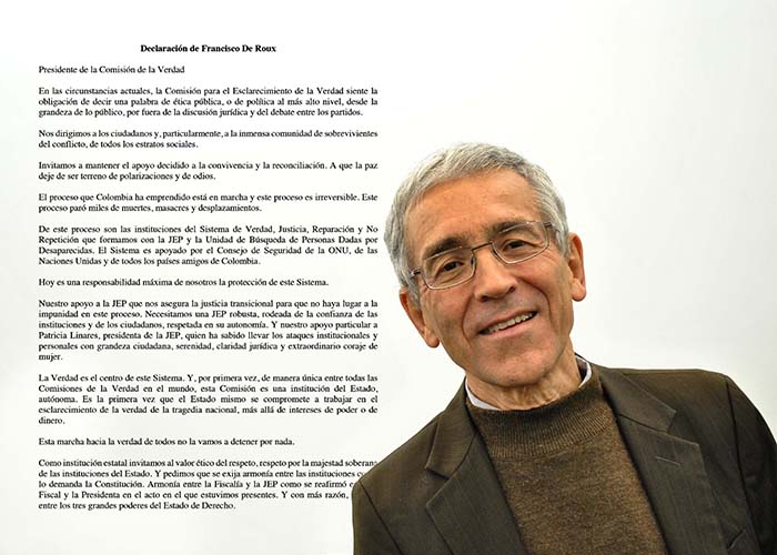 Con una voz casi desesperada, el padre Francisco De Roux, presidente de la Comisión de la Verdad, hace un llamado a los colombianos desde la ética pública frente una paz que se ve amenazada