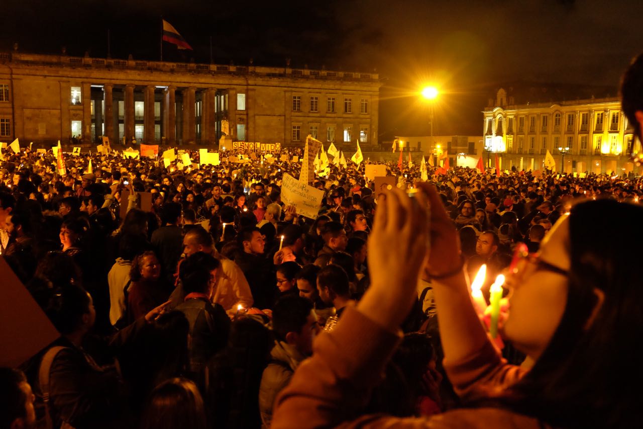 El Velatón, una jornada convocada por las redes para decirle no más al asesinato de líderes sociales, fue enorme en la Plaza de Bolívar. Crónica de Iván Gallo