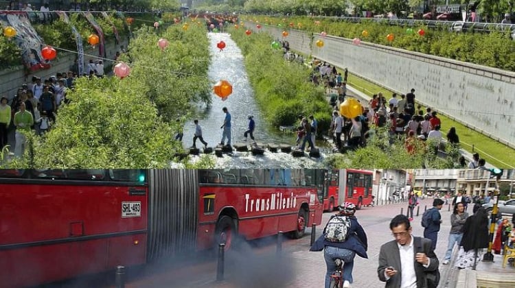 El río San Francisco fue sepultado bajo un sarcófago de cemento, Bogotá podría empezar a rescatarlo entre la Quinta de Bolívar y la carrera séptima. Como han hecho Seúl, Bilbao, Londres…