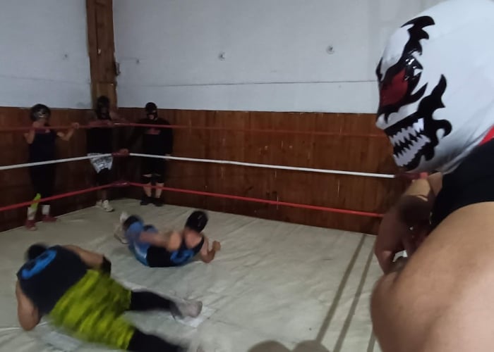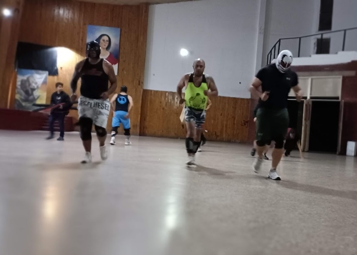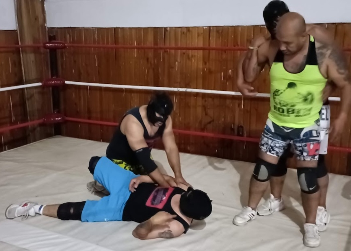 A la cita de las 7:00 de la noche llegan Wang Kung, Afrikano, Toro y Serket y tres más. Sin falta, entrenan los lunes y jueves de todas las semanas. Aunque parecen amigos como lo afirman ellos mismos, en el cuadrilátero desconocen esa amistad y los golpes, que vienen y van son de verdad, mezclados con acrobacias para evitar más daño de lo ‘normal’.