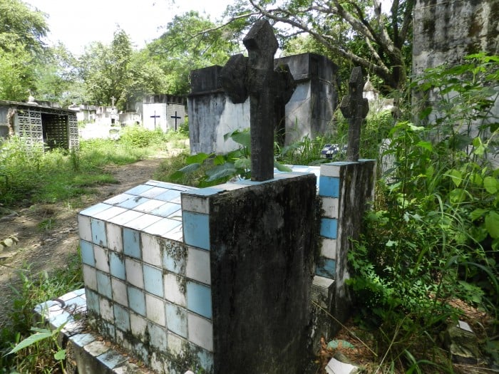 El cementerio está siendo vilmente saqueado por vulgares rateros, supuestos brujos que utilizan para sus ceremonias los restos óseos y jóvenes buscavidas que vagan por ese entorno surrealista. El aspecto que presenta la necrópolis es dantesco: nichos destrozados, lápidas levantadas, cráneos, fémures y todo tipo de huesos desperdigados por el lugar y tumbas abandonadas desde hace años. Incluso se pueden ver hasta dentaduras postizas de los fallecidos.