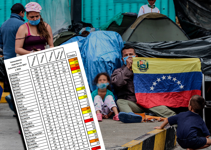 En los primeros meses de 2021 han fallecido en total 523 venezolanos, si la tendencia continúa tal como está, este año podría cerrar con una cifra superior a los mil asesinados del país vecino. El informe de Medicina Legal también cuenta de 170 personas muertas por suicidio, 566 en accidentes de tránsito y 422 muertes por causa natural.