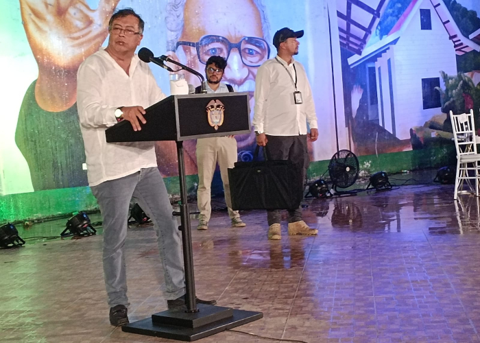 En la tarima, donde lo acompañan su ministra de Salud, Carolina Corcho; el alcalde de Aracataca, Luis Emilio Correa, y el gobernador del Magdalena, Carlos Caicedo, también se le ve poco interesado en hablar con sus compañeros de silla. Ni siquiera con su ministra abre mucho diálogo. Si le comentan algo responde con un par de palabras y vuelve a él.