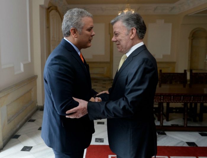 A las 9 de la mañana el presidente electo Iván Duque llegó a la Casa de Nariño para reunirse con uno de sus mentores, Juan Manuel Santos. En un día decisivo para la paz del actual presidente, cuando el Senado deberá decidir sí le da vía libre a la reglamentación de la JEP, Duque y Santos definirán todo lo relacionado al empalme del actual y futuro gobierno. La implementación del proceso de paz es clave en la agenda del día, cuando algunos están escépticos frente a la política que implementará el nuevo presidente. De hecho, Duque tiene previsto un almuerzo con el Fiscal Martínez, la presidente de la JEP Patricia Linares, el Procurador Carrillo, el presidente de la Corte Constitucional y la nueva vicepresidente Marta Lucía Ramírez a la 1 de la tarde para discutir específicamente el futuro de la JEP.
