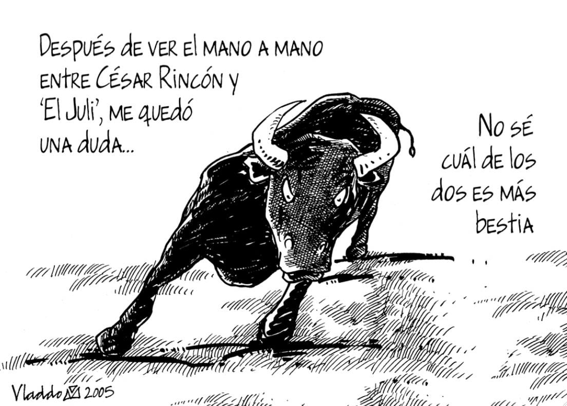 Y vuelvo y le pregunto a Vladdo. ¿Dónde está el arte? En este ritual repugnante, doloroso, y nauseabundo que debe obligadamente sufrir el toro en una muerte “digna y legal”.