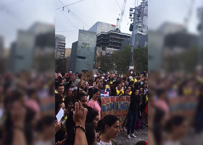 Con esta arenga cientos de estudiantes colombianos residentes en Melbourne le cantaron al presidente al son del himno que se hizo famoso en La Casa de papel.