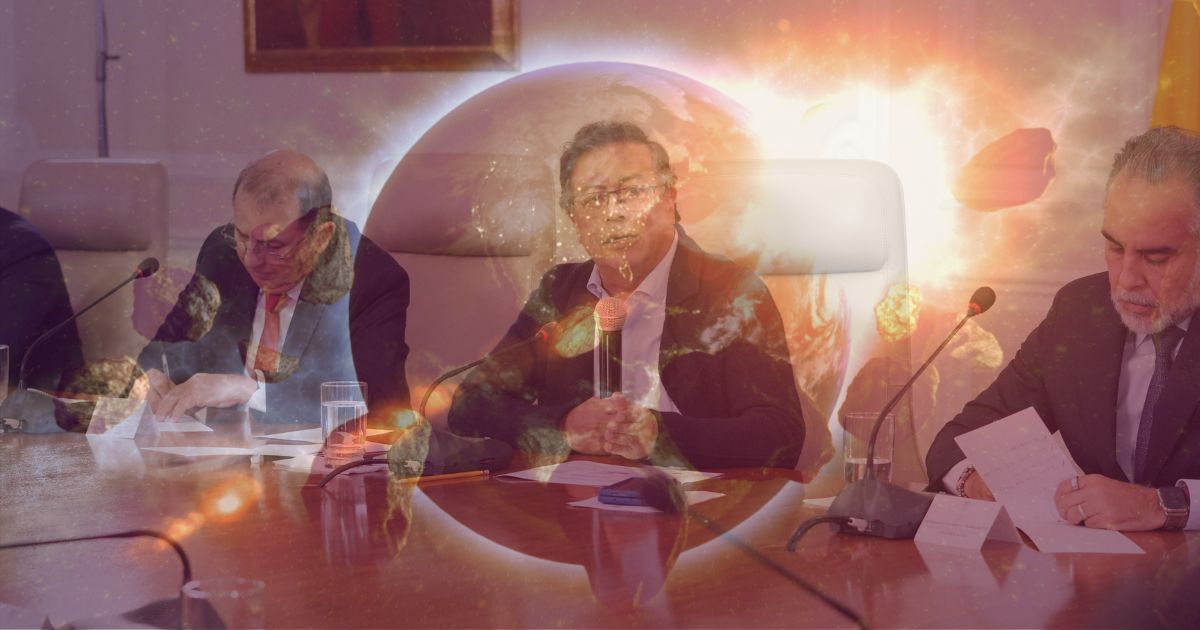 Por qué Dios no se apiada de nosotros los colombianos, y con su taco de billar, impulsa ese asteroide, hacia la parte sur de Latinoamérica, con dirección a Colombia específicamente, hace que el asteroide entre al centro del país, más exactamente al Departamento de Cundinamarca, pase como ráfaga que lleva su furia divina, primero por Cota, Chìa, y municipios aledaños a Bogotá, la capital de Colombia, luego baje por la Calera, tome la izquierda, y como un poderoso y veloz cometa incandescente, vuele por toda la carrera 7ª, hacia el sur, pase la calle 26, la av. 19, siga a estruendosa velocidad y finalmente llegue a la Casa de Nariño, y explote en un millón de pedacitos, contra la construcción, justo a la hora en que se realiza, el famoso Consejo de Ministros, dirigido por Petro, y televisado a todo el mundo.